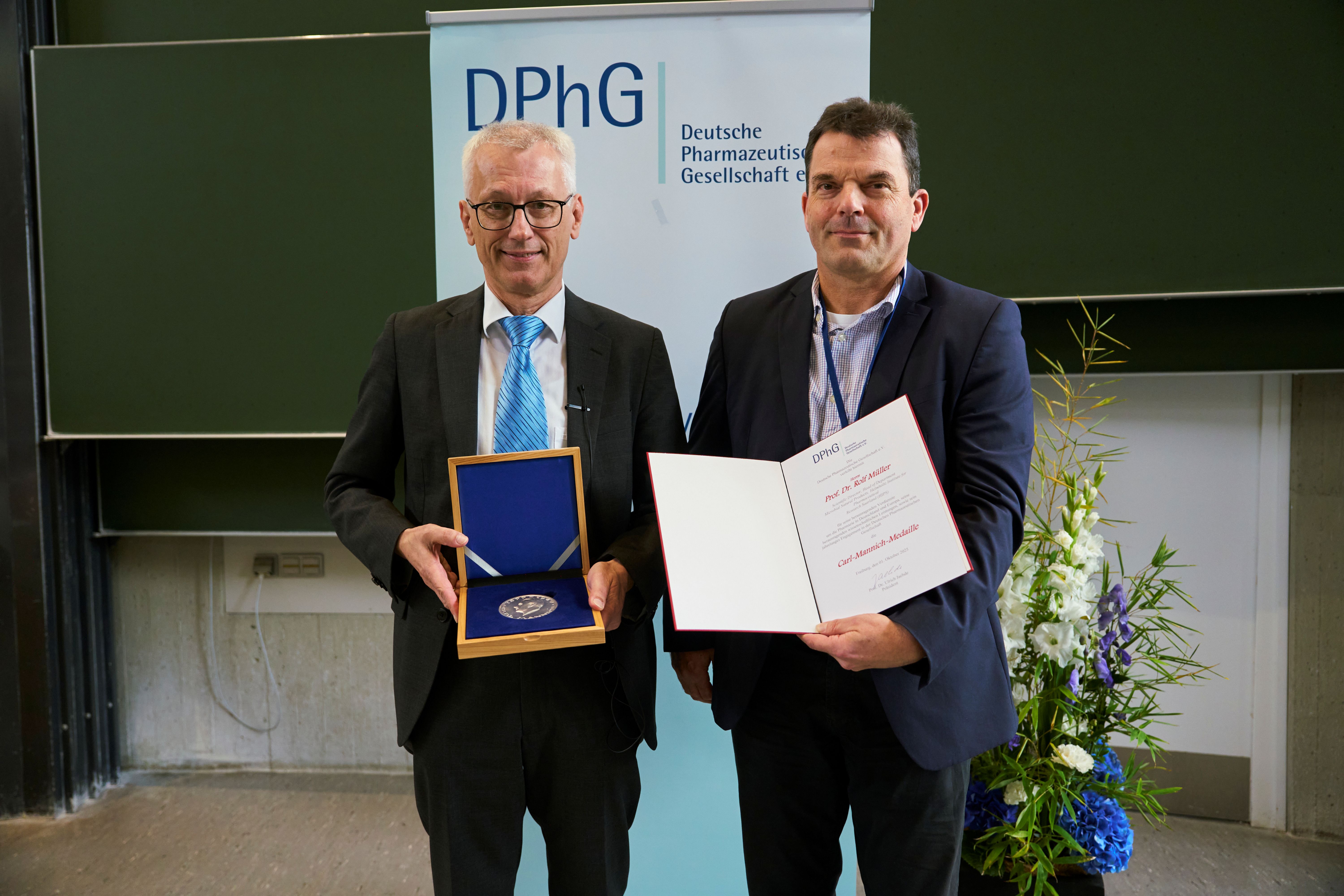 Die Deutsche Pharmazeutische Gesellschaft (DPhG) hat Prof. Dr. Rolf Müller die Carl-Mannich-Medaille 2025 verliehen. Die Carl-Mannich-Medaille ist die höchste Auszeichnung der DPhG für herausragende Leistungen auf dem Gebiet der wissenschaftlichen Pharmazie.